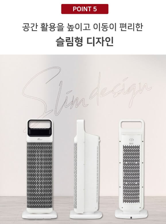 리모컨이 있어 편리하게 작동할 수 있으며 디자인 또한 슬림하게 나와 공간 활용이 좋습니다. 전도 안전 스위치 및 관열안전장치와 반영구 워셔블 필터가 설치되어 있습니다. 온풍기가 넘어졌을 때 자동으로 전원이 차단되며 과전압, 과전류 시도 역시 자동으로 차단이 됩니다. 좌우로 자동 회전이 가능합니다.