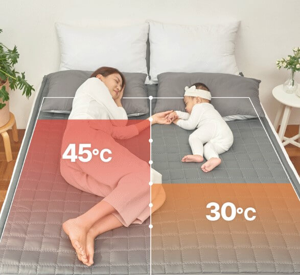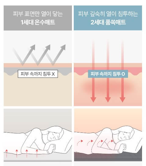 천연 사해 블랙 머드로 코팅된 직물로 제작되어 국내 최초로 원적외선이 방출되는 온수매트로 몸속까지 따뜻하게 해 줍니다.