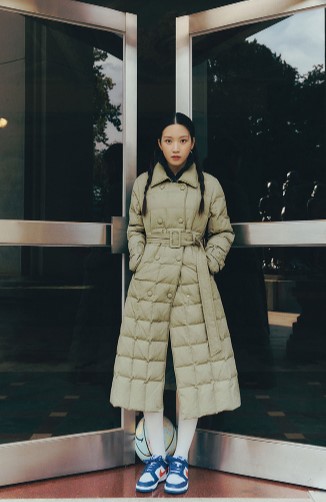 A라인 실루엣과 동일한 소재의 벨트로 날씬하면서도 길어 보이게 연출이 가능합니다. 충전재는 솜털 80%, 깃털 20%로 가벼우면서도 따뜻한  롱패딩입니다.