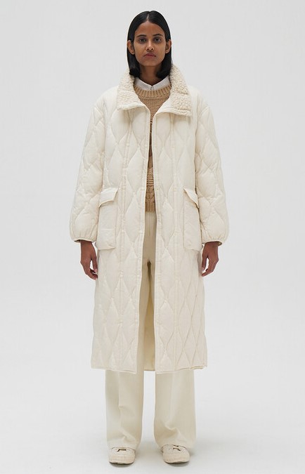 펄 탈부착이 가능하여 두 가지 무드로 연출이 가능하며 소매 시보리 디테일로 보온성을 높였습니다.