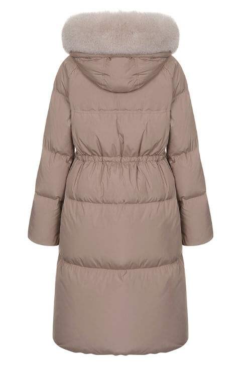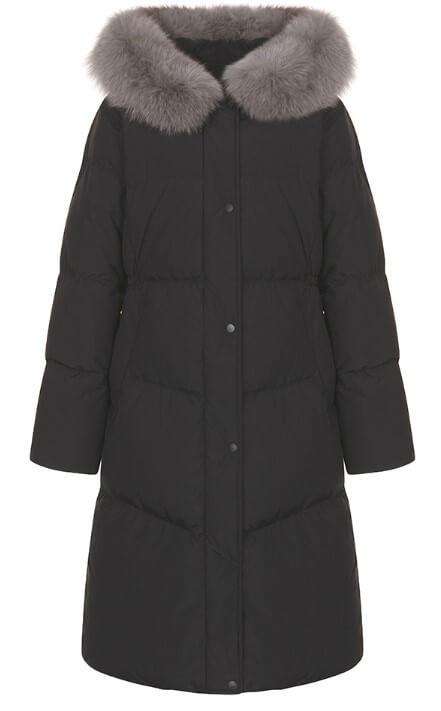 상단의 넥라인에는 폭스퍼를 사용하여 보온성과 함께 옷의 고급스러운 느낌을 더욱 살렸습니다. 허리 벨트는 탈부착이 가능한 착용으로 슬림한 핏과 편안한 핏을 동시에 연출할 수 있습니다.