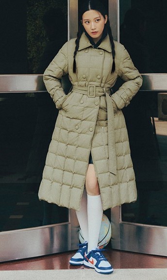 A라인 실루엣과 동일한 소재의 벨트로 날씬하면서도 길어 보이게 연출이 가능합니다. 충전재는 솜털 80%, 깃털 20%로 가벼우면서도 따뜻한 롱패딩입니다.
