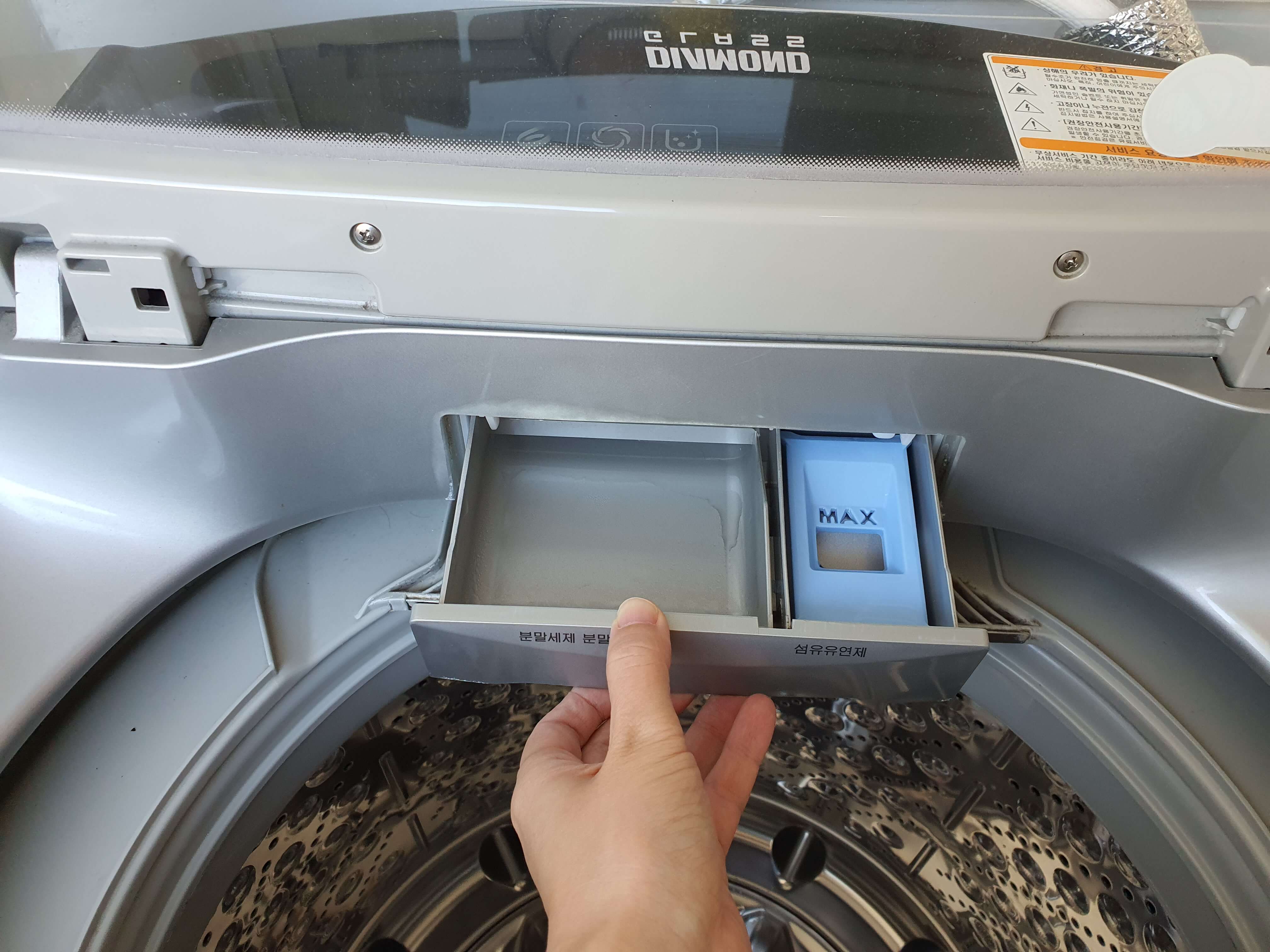 ②세탁통의 물이 다 빠진 후 헹굼과 탈수를 하고 세제통에 급수가 되는지, 배수호스에 물이 빠지는 지를 확인합니다. 만약 급수가 되지 않을 경우 따뜻한 물수건으로 수도꼭지 또는 세탁기 급수호스 쪽 연결부위를 녹여줍니다.