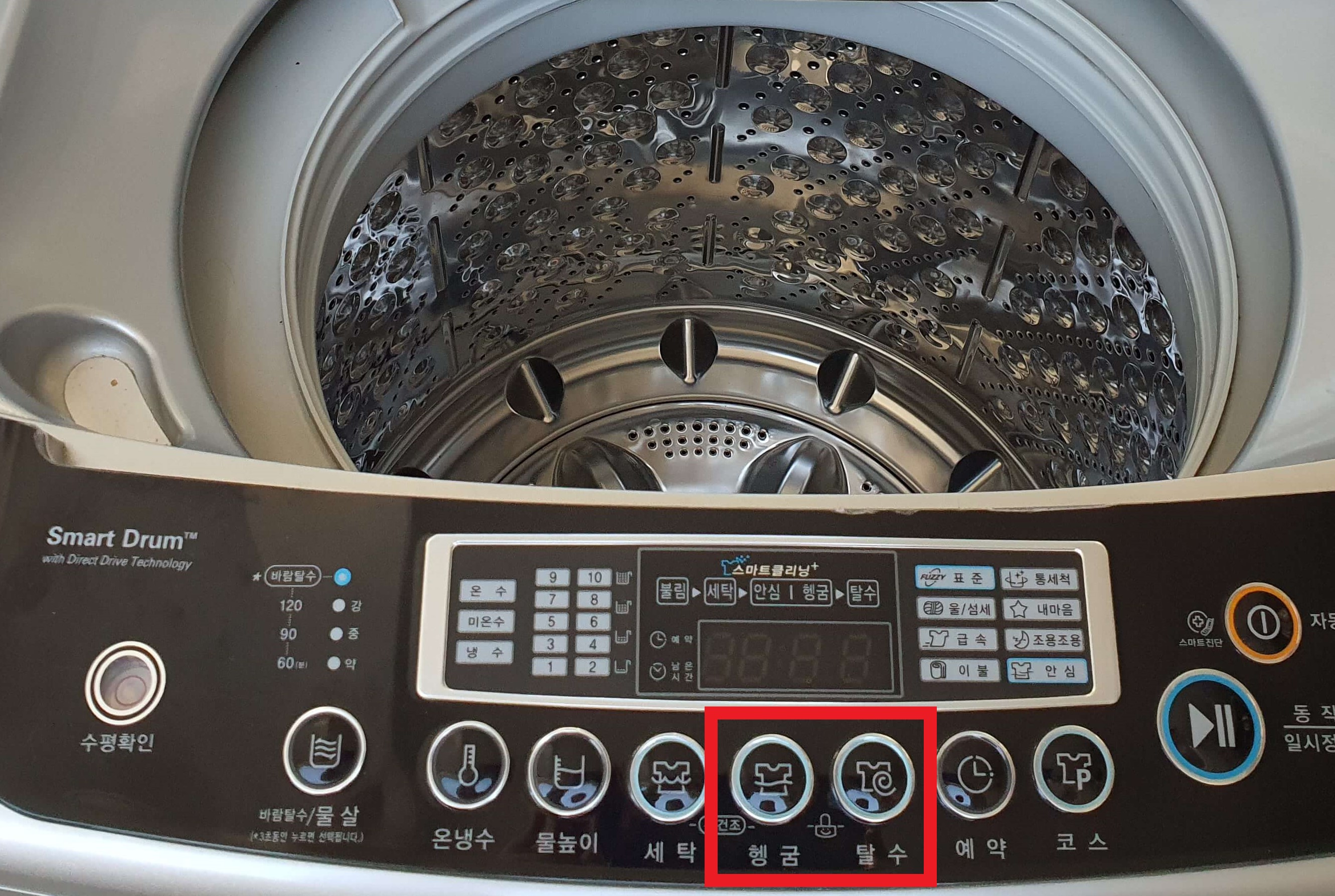 ①세탁을 완료한 후 세탁물을 빼낸 상태에서 탈수를 한 번 더 실시하여 세탁기 내부에 남아 있던 물을 완전히 빼줍니다.
