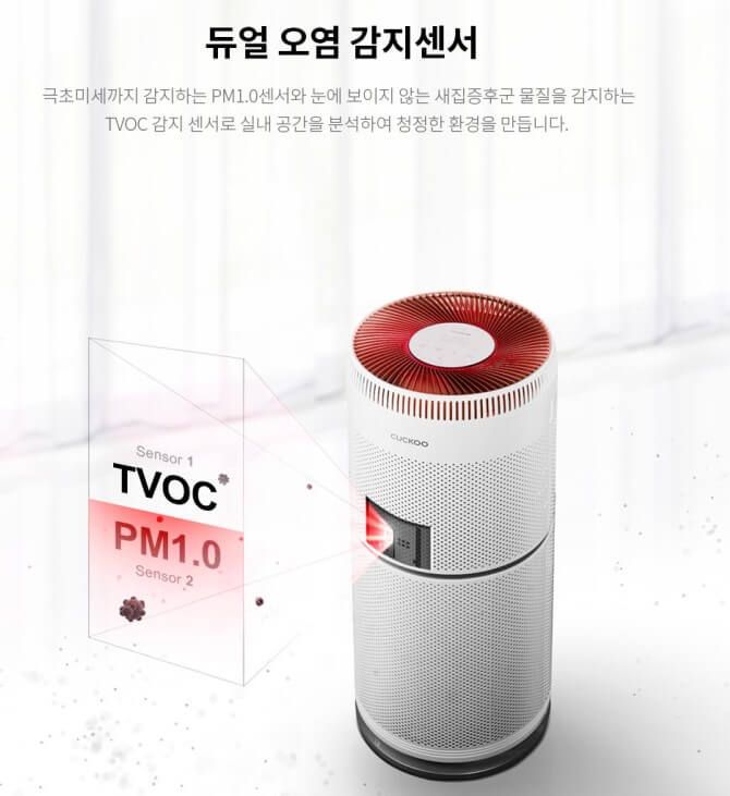 PM1.0 센서로 아주 작은 미세먼지 감지하며 TVOC감지 센서로 새집증후군 물질도 감지하여 실내 공기를 분석합니다. 공기청정기의 필터를 프리필터, 토탈케어시스템 필터로 되어 있어 큰 먼지, 5대 가스(포르알데히드, 암모니아, 아세트알데히드, 초산), 초미세먼지 PM 2.5는 물론 0.3μm까지도 제거합니다. 별도구매로 기능성 필터를 구매할 수 있으며 기능성필터는 황사, 스모그, 먼지진드기, 꽃가루 제거 기능이 가능합니다.