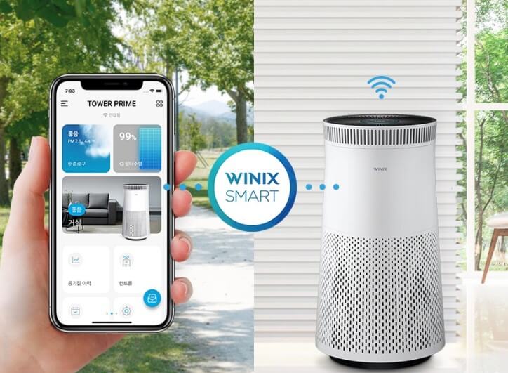앱스토어에서 위니아스마트 앱을 설치하면 원격으로 공기청정기를 제어할 수 있으며 필터 수명도 확인할 수 있습니다. 또한 앱을 통해 편리하게 정품 필터를 구매할 수 있습니다.