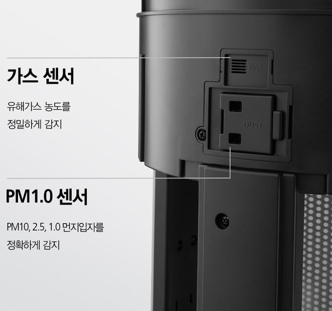 실내의 먼지, 유해물질, 냄새 그리고 밝기까지 저절로 감지하는 트리플 스마트 센서를 가지고 있어 실내의 공기를 종합적으로 스스로 분석하여 상황에 알맞은 공기청정을 자동으로 진행합니다. 에너지소비효율도 1등급입니다.