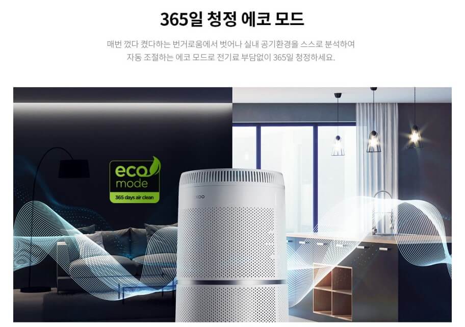 에너지소비효율이 1등급이며 GPS기능을 가지고 있어 사용자가 제품 반경 500M 내 접근 시 스스로 작동하여 공간을 미리 청정하게 관리해 줍니다.