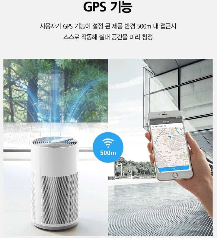 에너지소비효율이 1등급이며 GPS기능을 가지고 있어 사용자가 제품 반경 500M 내 접근 시 스스로 작동하여 공간을 미리 청정하게 관리해 줍니다.