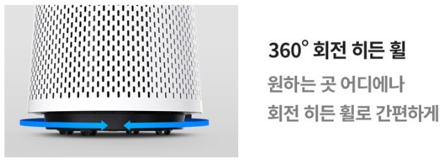 필터교체 알림 기능이 있으며 제품 아래 바퀴가 달려 있어 이동이 편리합니다.
