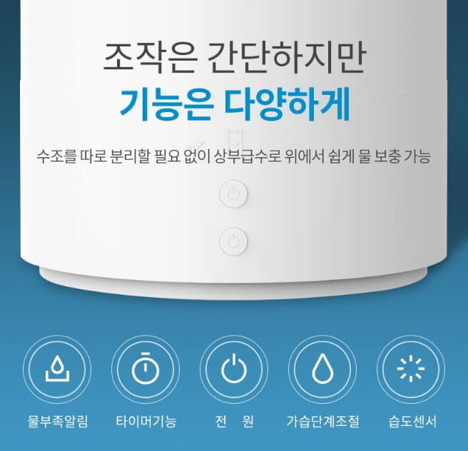 가습기는 뭐니뭐니해도 세척이 가장 중요할 텐데요. 분리하여 수조내부 전체의 세척이 가능합니다. 물을 채울때도 상부 급수가 가능하여 따로 수조를 분리 할 필요가 없습니다.