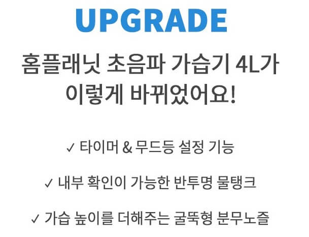 자동으로 습도를 감지하고 분무량을 조절하는 기능도 있어 방안이 과습되는 것을 막아주어 쾌적한 실내 공기를 유지해 줍니다. 4.5L의 넉넉한 물을 담을 수 있어 32시간 지속해 가습기를 사용 할 수 있습니다.