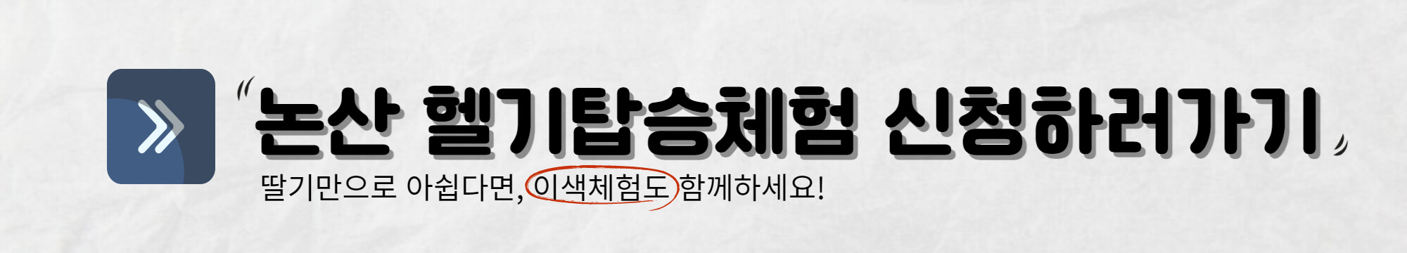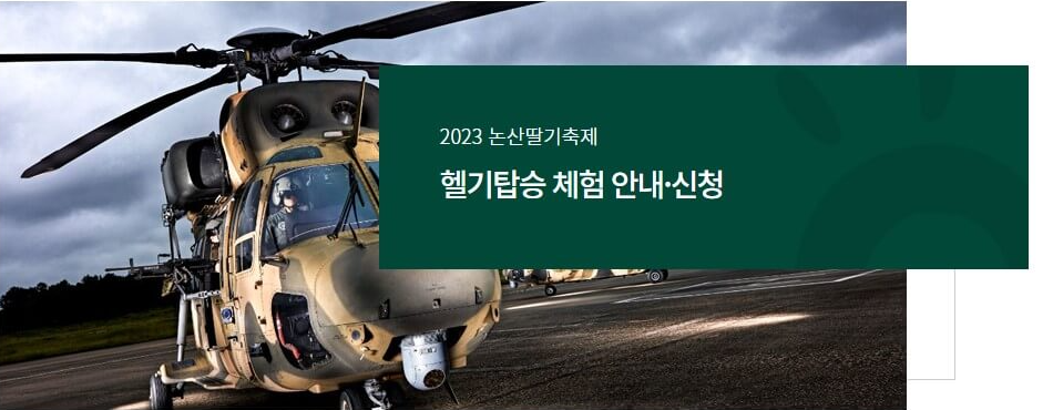 일반인이 평소에 헬기를 타볼 수 있는 기회는 거의 없는데요. 이번 논산 딸기축제에서 헬기탑승체험을 해본다면 정말 잊을 수 없는 체험이 될 것 같습니다. 헬기 탑승은 3.10.(금) 140명 / 3.11.(토) 160명 참여할 수 있으며 사전신청을 받고 있습니다. 사전신청을 2.15.~20일까지 인터넷으로 접수가 가능합니다.