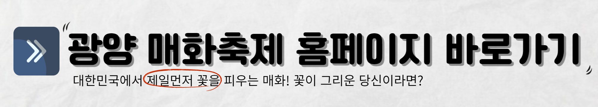 우리나라의 봄을 알리는 대표 축제, 광양 매화축제인데요. 광양의 매화는 전국에서 가장 먼저 꽃을 피우기로 유명합니다. 겨울이 끝나고 봄을 알려주는 첫 꽃이니 얼마나 더 반가울까요! 코로나로 4년 만에 재개하는 축제라고 하니 매화들도 사람들을 많이 그립지 않았을까요?