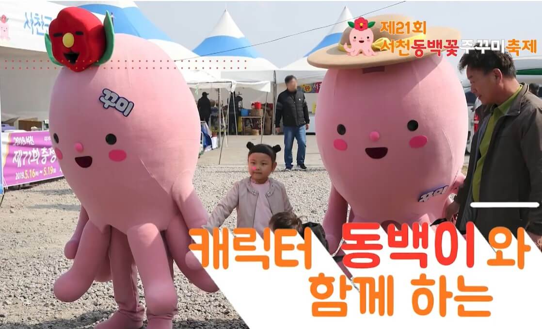 축제에 다녀오면 남는 건 사진뿐이죠! 서천 축제의 마스코트 동배기, 꾸미와 함께 예쁜 사진도 찍을 수 있는 캐릭터 포토존도 마련됩니다. 눈도 즐겁고 입도 즐거운 서천 동백꽃 주꾸미 축제 기대하지 않을 수 없네요.