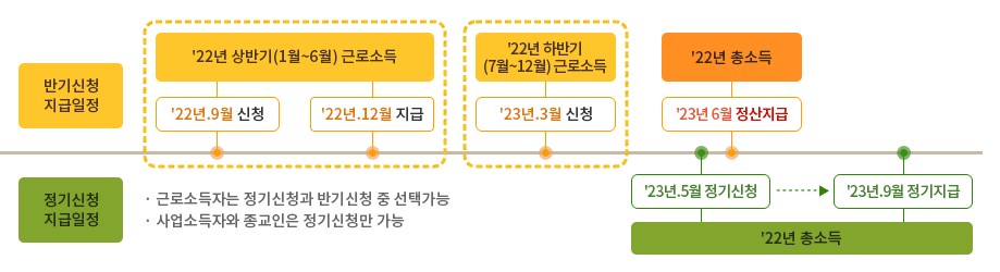 | 반기신청 | 상반기분 9.1~9.15. | 12월말 지급 | 근로소득만 있는 경우 |