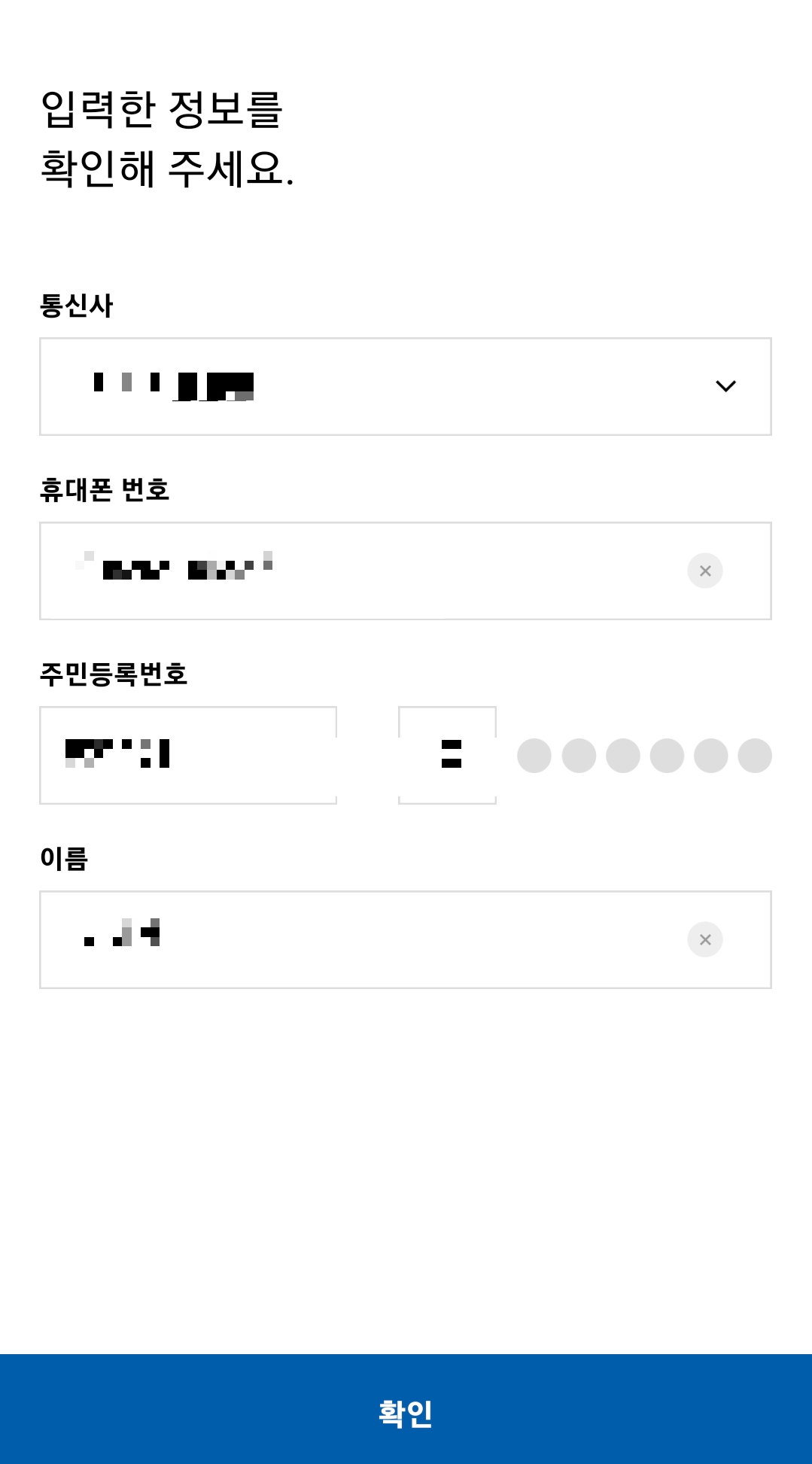 ② 개인정보를 입력하고 인증번호를 입력합니다.