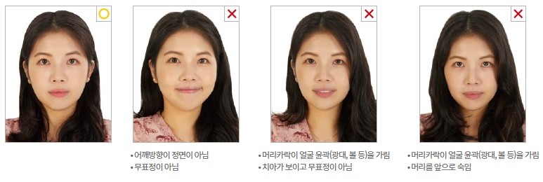 여권용사진은 6개월 이내에 촬영한 사진으로 준비해야 하는데요 사진 크기는 가로 3.5cm x 세로 4.5cm입니다. 배경은 희색바탕이며 테두리가 없어야 합니다. 어깨는 정면을 향하고 있어야 하고 입은 다물어 치아가 보이면 안 됩니다. 미소를 지어도 안됩니다. 머리를 귀 뒤로 넘겨 얼굴의 모든 윤관이 보여야 합니다. 안경 쓴 사람의 경우 안경테가 눈을 가리거나 눈과 겹쳐서는 안 됩니다.