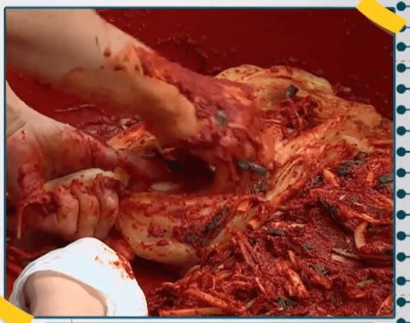 7. 준비한 절임배추 10포기 사이사이에 김칫소를 넣고 버무려주면 완성됩니다.