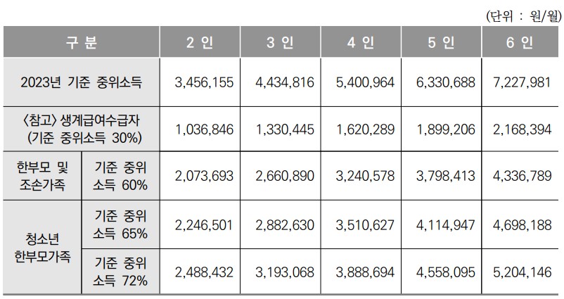 한부모가족의 선정 기준은 소득인정액 중위소득 60% 이하여야 하며 중위소득 60% 이하가 인정되면 아동양육비 등 복지급여를 지급받을 수 있습니다. 청년한부모가정은 기준중위소득 72% 이하여야 하며 아동양육비 등 복지급여를 받기 위해서는 기준중위소득 65%이하기 되어야 합니다. 👉🏻우리가정 소득인정액 모의계산기로 계산하기