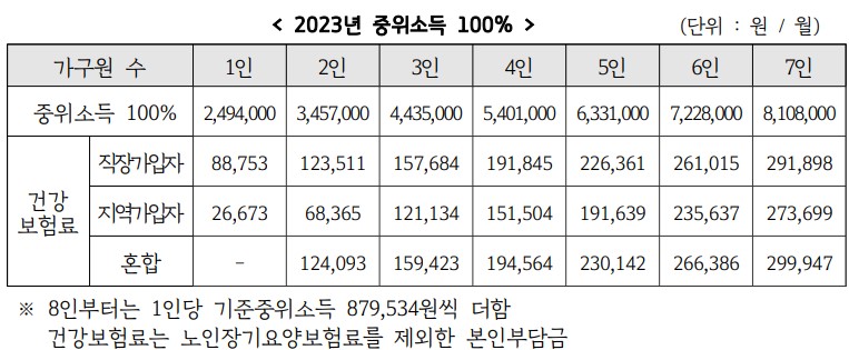 이때 가구원수는 본인, 배우자, 자녀의 건강보험료를 합산하며, 본인이 유리할 시 등본상 등재된 부모, 형제, 자매까지 가구원으로 선정하여 건강보험료를 합산할 수 있습니다.