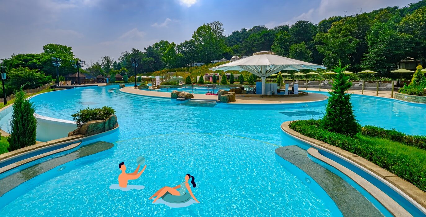 실외의 유수풀은 초당 1m 유속으로 물이 흐르며 길이는 150m로 각 코스별로 다양한 테마를 경험할 수 있습니다. 키즈랜드에는 어린이들이 안전하고 즐겁게 물놀이를 즐길 수 있도록 미끄럼틀, 컵분수 등 재미있는 시설들이 가득한 수중 놀이터가 있습니다. 또한 물놀이하면 빼놓을 수 없는 파도풀도 운영한다고 합니다. 추위를 잊은 아이들이 신나게 물놀이하는 모습이 저절로 떠오르네요.
