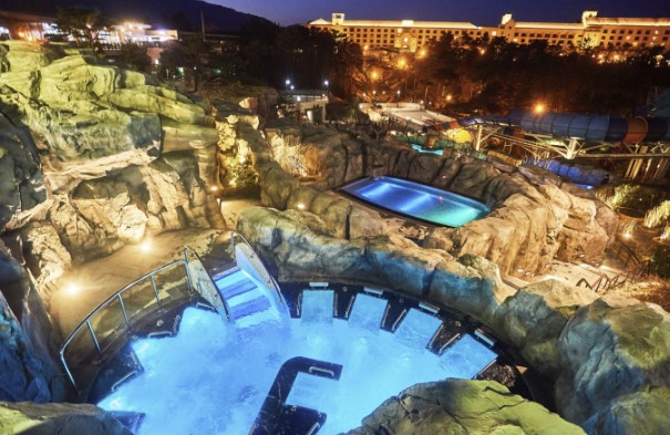 설악 워터피아에서는 저녁 7시부터 9시 반까지 나이트 스파를 즐길 수 있습니다. 다양한 색감의 조명으로 장식된 나이트 스파는 이색적인 경험이 될 것입니다. 설악쏘라노에서 숙박도 가능합니다.