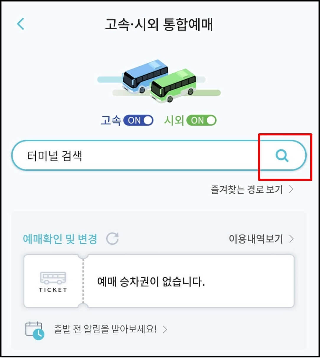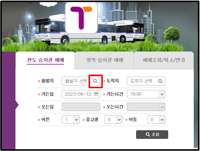 3. 출발 터미널을 검색합니다.
