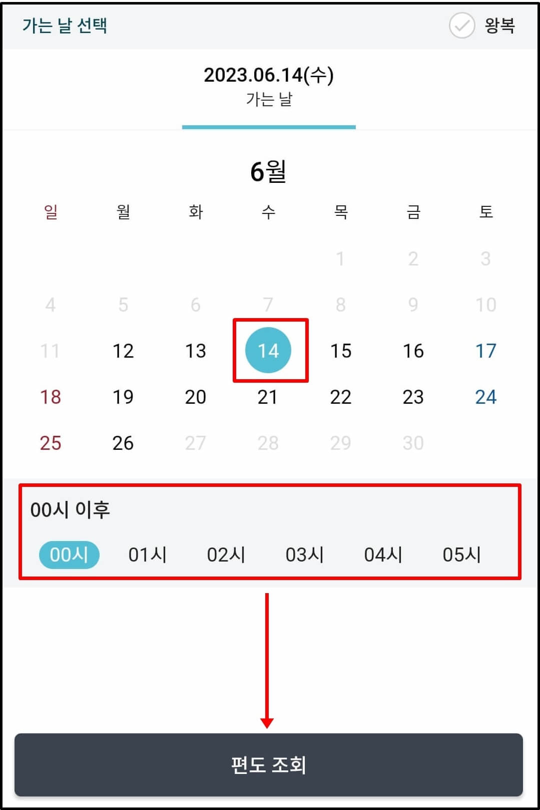6. 출발 시간을 선택합니다.