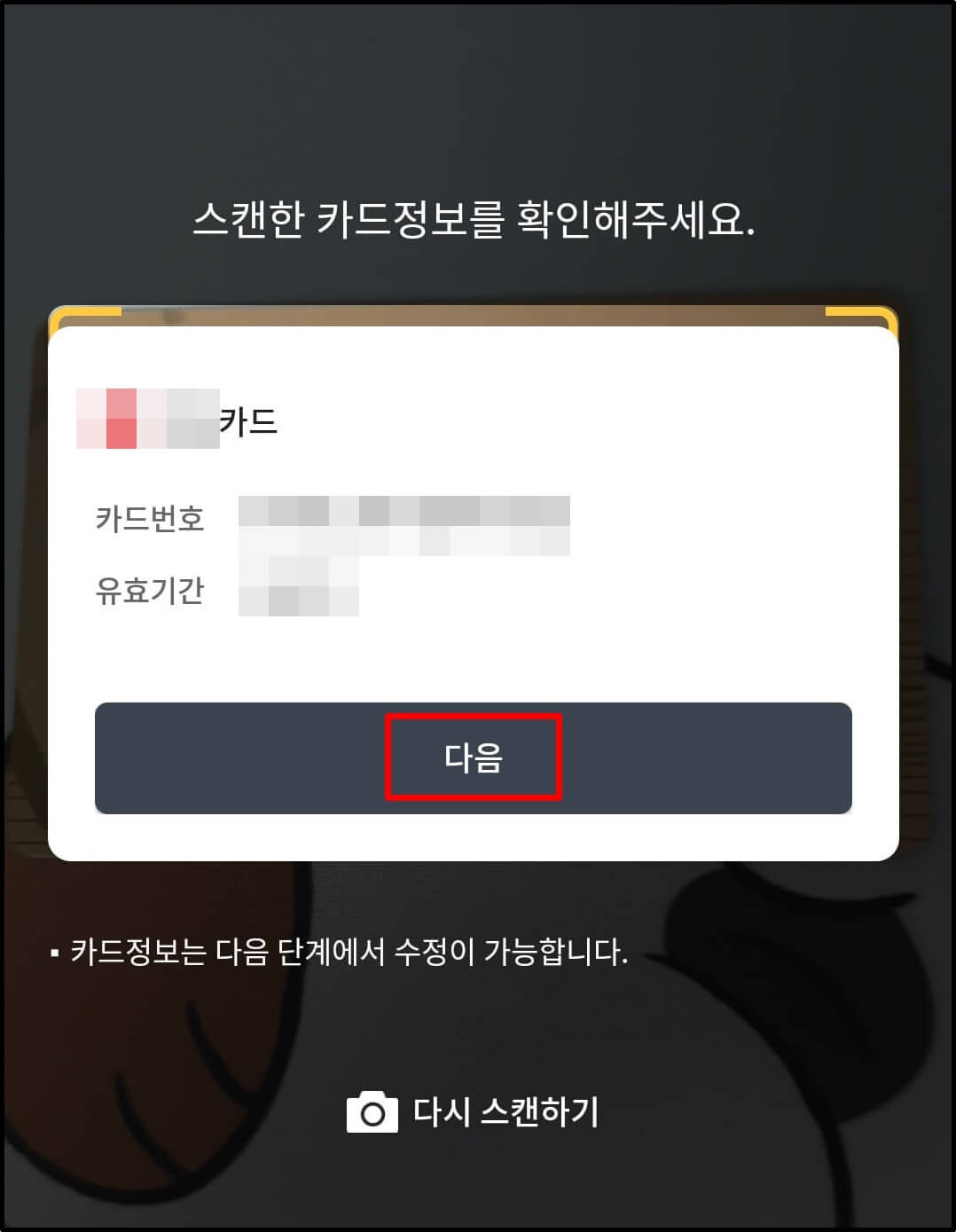 12. 찍힌 카드정보가 맞는지 확인합니다.