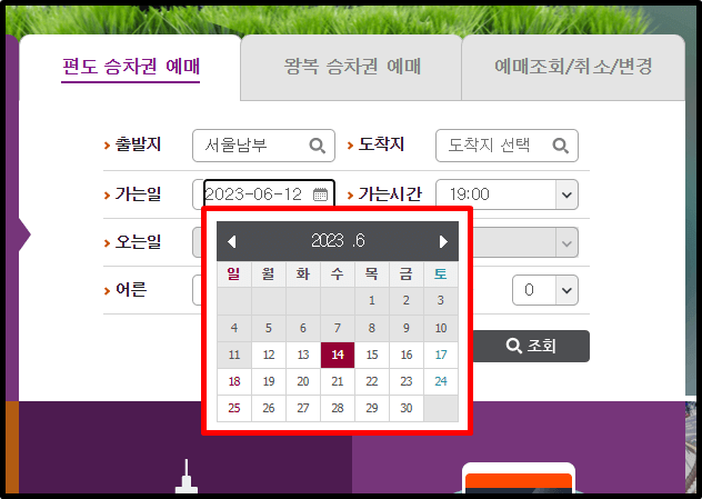 6. 가는 날짜를 선택합니다.