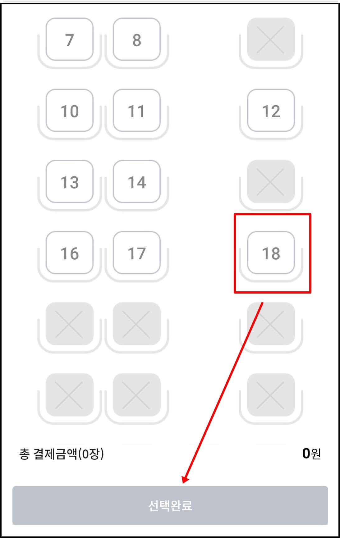 8. 원하는 자리를 선택합니다.
