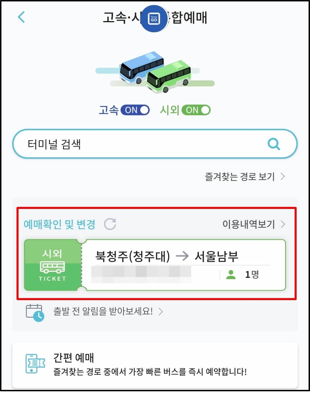 시외버스 휴대폰 예매 방법