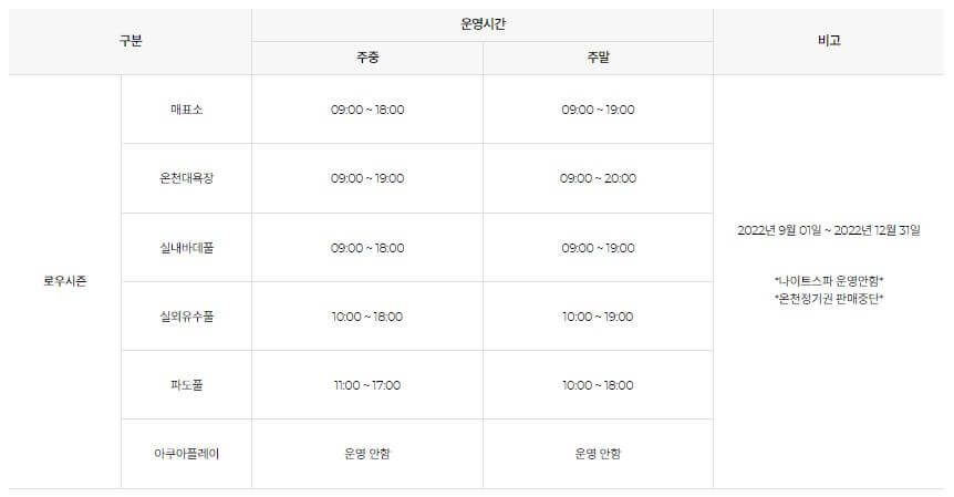 - 주간권 10:00 ~ 18:30 / 나이트 스파 19:00 ~ 21:30