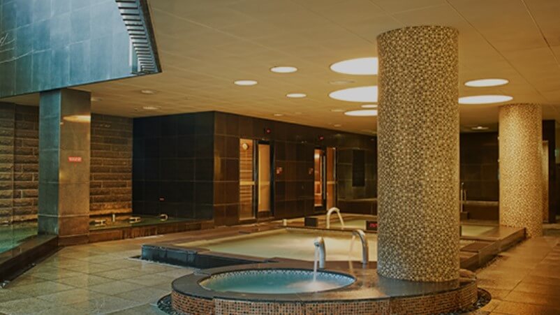 실내에는 신체부위에 따라 11종 29가지 수압마사지를 제공하는 바데풀 시스템이 있으며 유러피안 스파, 풋스파, 키즈 플레이 시설이 있습니다. 또한 온탕, 열탕, 급냉탕, 온돌찜질대 등 사우나도 마련되어 있습니다.