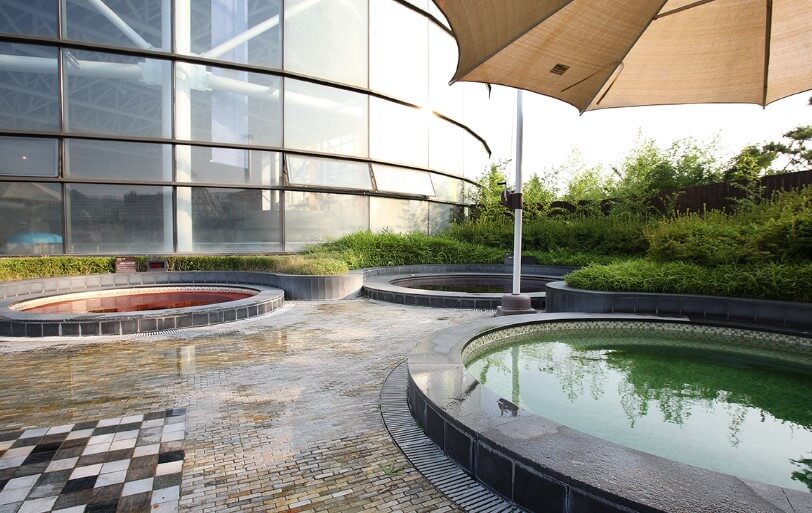 사우나를 할 수 있는 편백나무방, 소금방, 황토방 등 건강에 좋은 다양한 자재를 엄선하여 만든 찜질 공간들도 마련되어 있어, 온천을 즐기고 난 후 찜질을 통해 완벽한 휴식을 즐기실 수 있습니다. 실외에는 열탕, 온탕, 침탕, 온천탕 등 다양한 노천 이벤트탕이 있으며, 인피니트풀, 아쿠아바 등 다양한 즐길거리가 마련되어 있습니다.