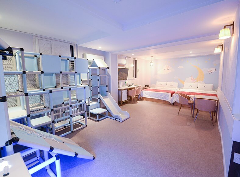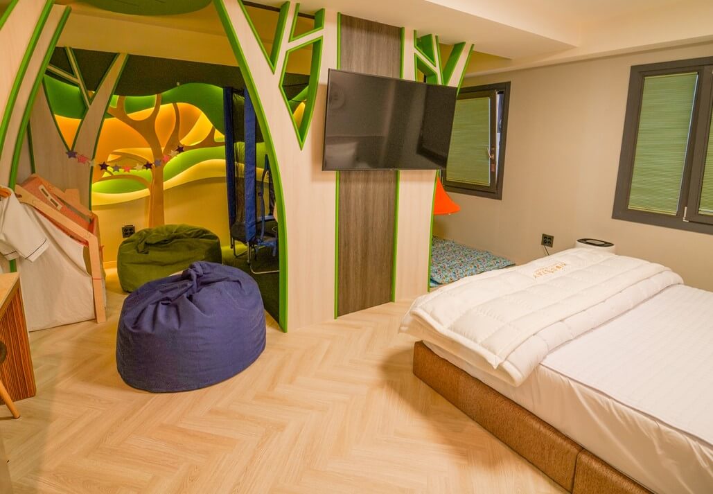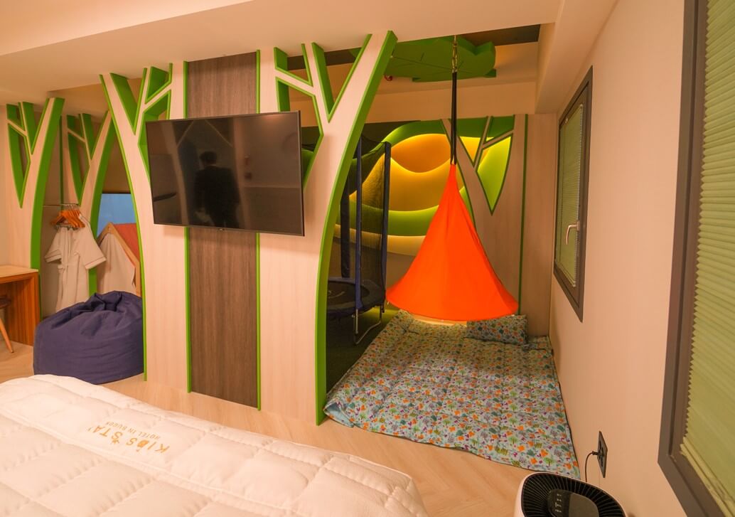 2019년에 오픈한 부곡온천 키즈스테이 호텔은 시설이 깨끗하고 아이들의 상상력을 자극하는 다양한 공간으로 꾸며져 있습니다. 호텔 내에는 가족탕은 기본이고, 레이싱룸, 인디안룸, 글램핑룸, 핑크룸, 플레이룸, 캐리비아룸 등의 테마에 맞게 알록달록 이쁘게 구성되어 있습니다.