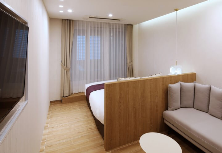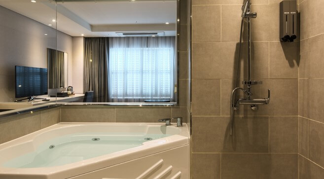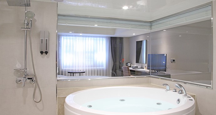 수안보온천 수호텔의 2인실의 경우 대형 욕조, 대중탕형, 대중탕 소형으로 나누어지는데 기준인원 및 최대 인원 2명으로 침대 더블 1가 있습니다.