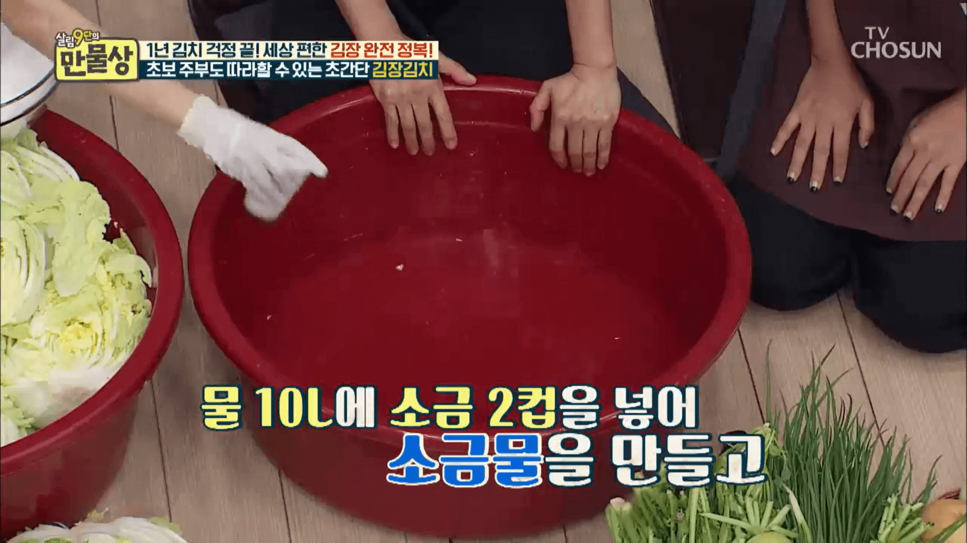 준비물 : 배추 10포기, 물 2L물병 5개, 소금 12컵 (종이컵 기준)