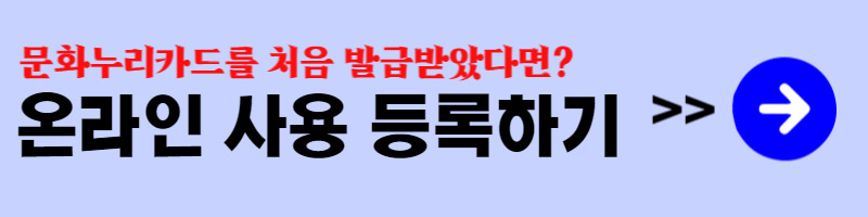 📢문화리카드를 처음 발급받은 분이라면 "온라인 사용등록"을 먼저 해야 합니다. 다음 링크를 통해 온라인 사용 등록 후 문화누리카드 이용하시기 바랍니다.