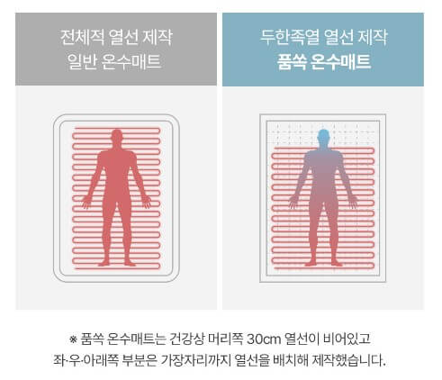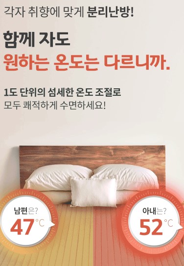 라텍스 매트리스폼을 사용하여 온수매트의 호수관 배김을 없애고, 자연순환 방식으로 소음도 없이 따뜻하게 숙면을 취할 수 있는 제품입니다.