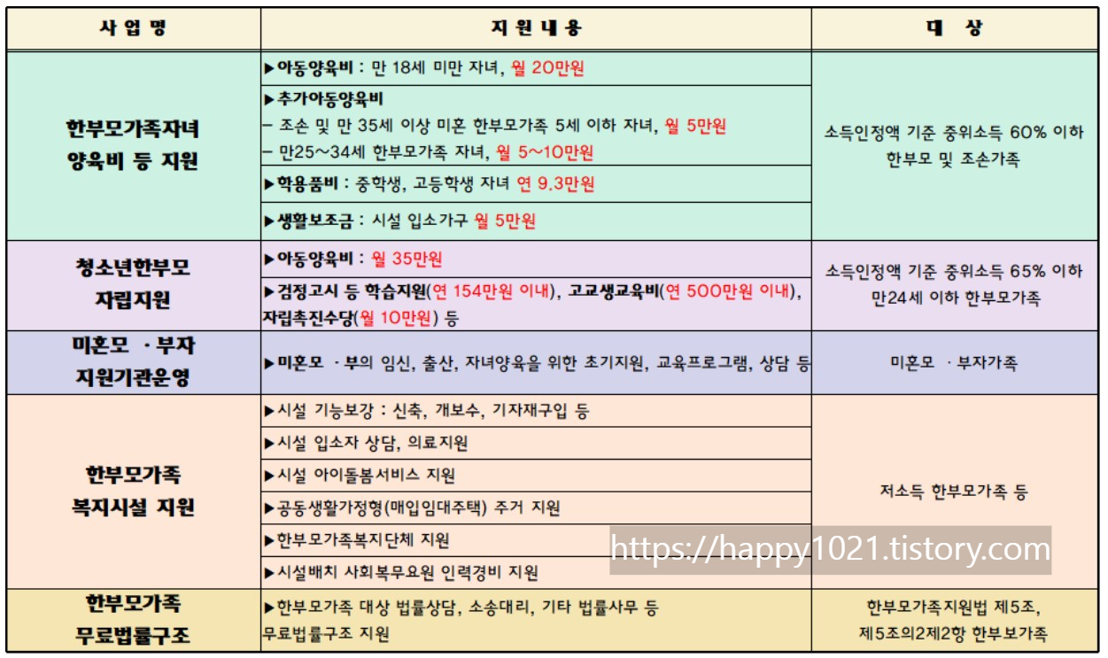 🤚🏻(잠깐!) 한부모가정의 지원대상에는 3가지 종류가 있는데요. 일반적인 한부모가정(모자가족, 부자가족), 조손가정, 청소년한부모가정 이렇게 나누어집니다.