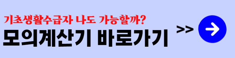 선천적인 질병, 갑작스러운 가족의 부재 등으로 생활에 어려움을 겪고 있는 분들이 계실 텐데요. 국가에서는 기초생활수급자를 선정하여 금전적혜택 및 다양한 지원을 하고 있습니다. 모의계산기를 통해 본인도 지원받을 수 있는지 빠르게 확인하시기 바랍니다.